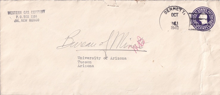 ![]() | Hand cancellation: "BENNETT, N. MEX. OCT 24 1940". |