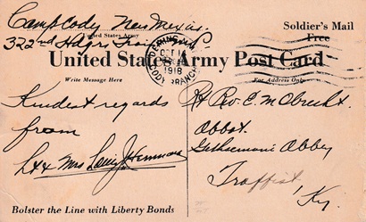 | Machine flag cancellation: "COLUMBUS, N.MEX. JUL 9 1918". Has "RETURNED TO WRITER" pointing hand auxiliary marking. |