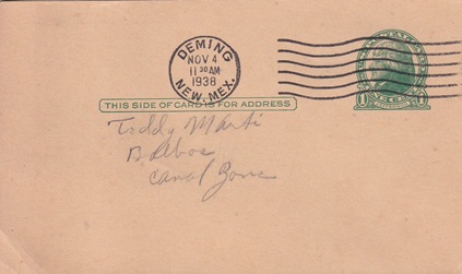 | Machine cancellation: "DEMING, NEW.MEX. NOV 4 1938". |