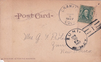 | Doane hand cancellation: "ZUNI, N. MEX. JUN 10 1907". |