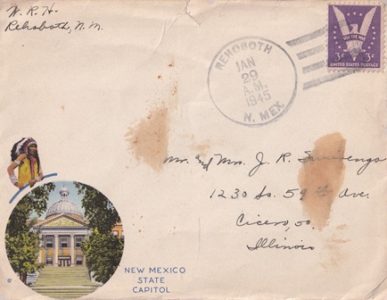 | Hand cancellation: "REHOBOTH, N. MEX. JAN 29 1945". |