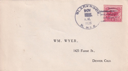 | Hand cancellation: "BLACK ROCK, N. MEX. NOV 24 1926". |