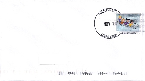 | Hand cancellation: "RAINSVILLE, NM 87736 USPS NOV 18 2015". |