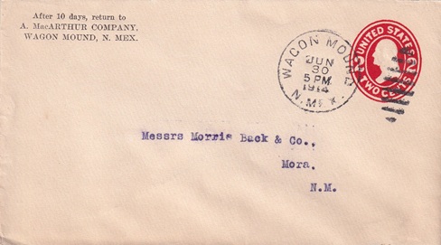 | Hand cancellation: "WAGON MOUND, N.MEX. JUN 30 1914". |