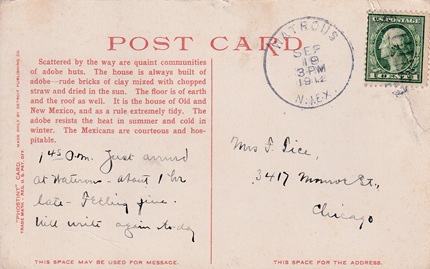 | Hand cancellation: "WATROUS, N.MEX. SEP 19 1912". |