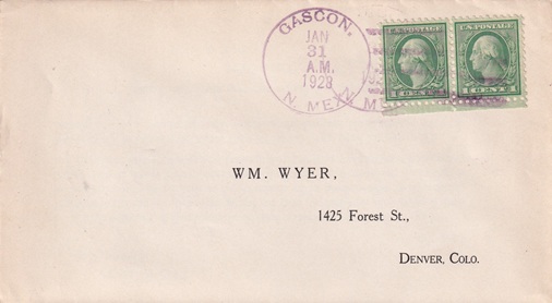 | Hand cancellation: "GASCON, N. MEX. JAN 31 1928. |