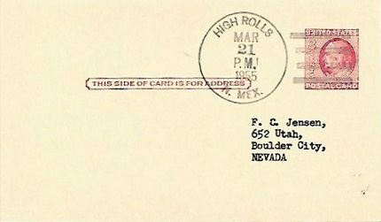| Hand cancellation: "TULAROSA, N.MEX. AUG 8" [circa 1917]. |