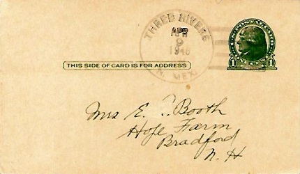 | Hand cancellation: "THREE RIVERS, N. MEX. APR 9 1946". |