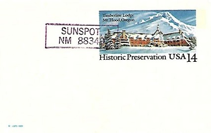 | Rectangular hand cancellation: "SUNSPOT, NM 88349" [circa early 1988]. |