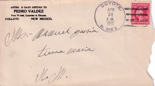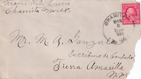 | Hand cancellation: "CHAMITA, N. MEX. MAR 2 1916". |