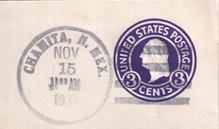 | Hand cancellation on cut piece: "CHAMITA, N. MEX. NOV 15 1934". |