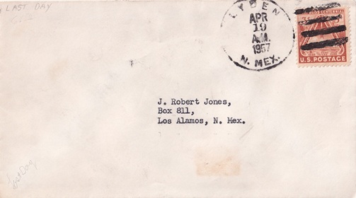 | Hand cancellation: "OJO SARCO, NM 87550 APR 25 1980". |
