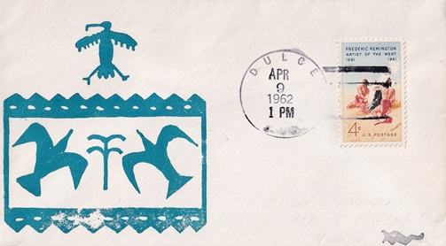 | Hand cancellation: "SAN JUAN PUEBLO, N. MEX. APR 7 1962". |