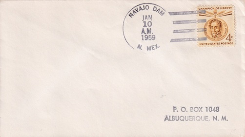 | Hand cancellation: "NAVAJO DAM, N. MEX. JAN 10 1959". |