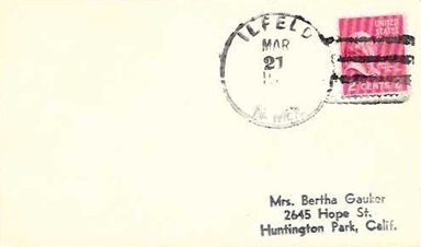 | Hand cancellation: "ILFELD, N.MEX. MAR 21" [circa 1955]. |