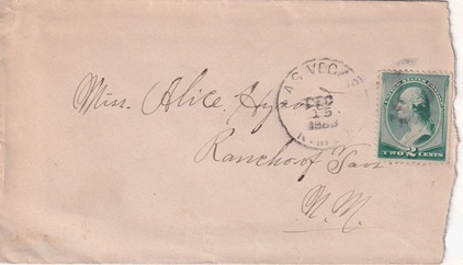 | Hand cancellation with cork killer: "LAS VEGAS, N.MEX. DEC 15 1888". [TPC] |
