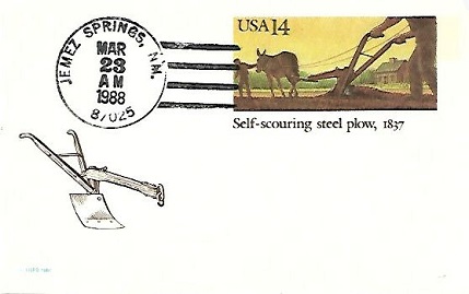 | Hand cancellation: "JEMEZ PUEBLO, NM USPO MAR 25 1988". |