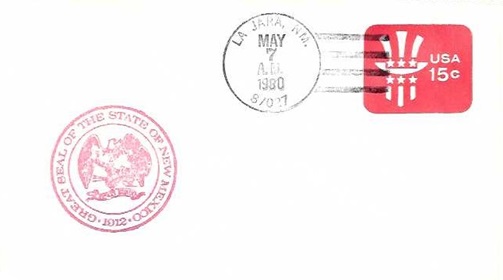 | Hand cancellation: "LA JARA, NM. 87027 MAY 7 1980". |