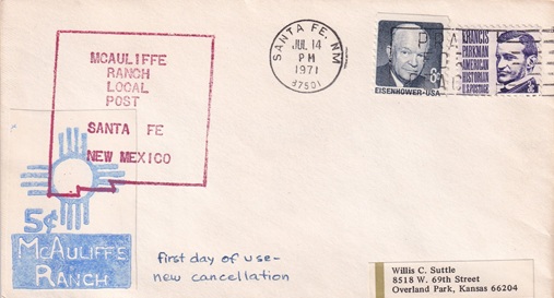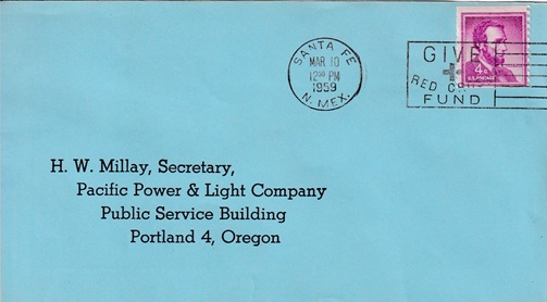 ![]() | Special hand cancellation: "New Mexico Philatelic Association Convention Sta., Santa Fe, N. Mex. NOV 6 1958". |