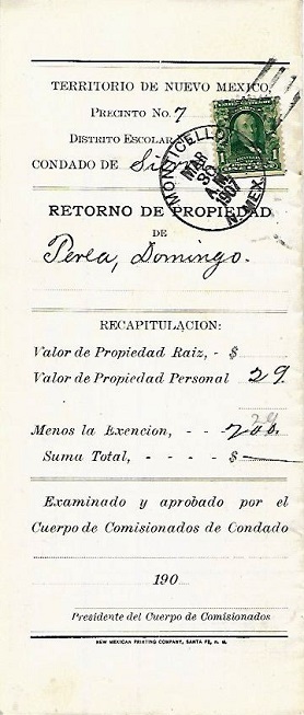| Hand cancellation on document: "LAS PALOMAS, N. MEX. MAR 30 1911". [TPC] |