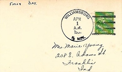 | Hand cancellations: "WILLIAMSBURG, N. MEX. APR 1 1951". |