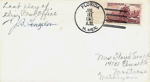 | Hand cancellation: "FLORIDA, N. MEX. JUL 31 1955". |