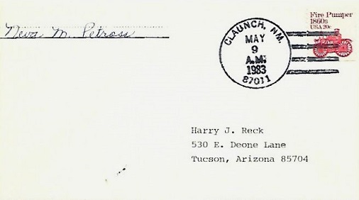 | Hand cancellation: "CLAUNCH, NM 87011 MAY 9 1983". |