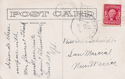 | Hand cancellation on back: "REC'D., SAN MARCIAL, N.MEX. DEC 5 1906. [TPC] |