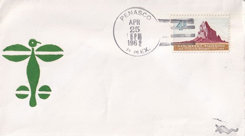 | Hand cancellation: "PENASCO, N.MEX. APR 25 1962". |