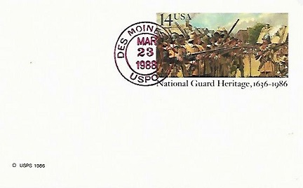 | Hand cancellation: "DES MOINES, NM USPO MAR 23 1988". |