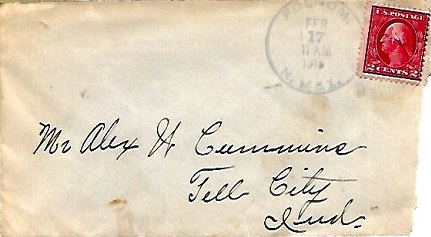| Hand cancellation: "FOLSOM, N. MEX. FEB 17 1913". |