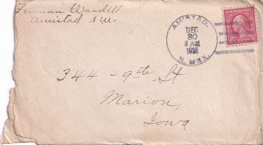 | Hand cancellation: "AMISTAD, N. MEX. DEC 30 1916". |