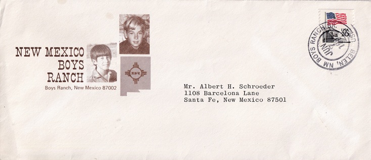 ![]() | Hand cancellation: "BOYS RANCH BR., BELEN, NM USPO JUN 7 1982". |