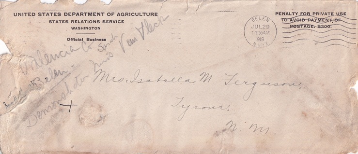 ![]() | Machine cancellation: "BELEN, N.MEX. JUL 29 1918". |