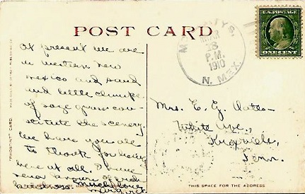 ![]() | Hand cancellation: "LAGUNA, N.MEX. DEC 31 1909". [TPC] |