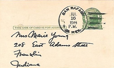 ![]() | Hand cancellation: "SAN RAFAEL, N. MEX. JUL 16 1949". |