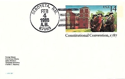 ![]() | Hand cancellation: "SEBOYETA, NM. 87055 FEB 4 1988". |