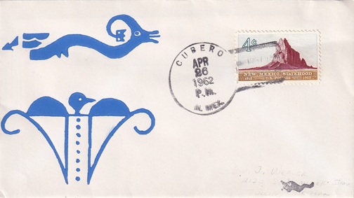 | Hand cancellation: "CUBERO, N. MEX. APR 26 1962". |