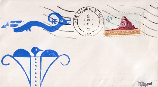 | Hand cancellation: "NEW LAGUNA, N. MEX. AP 7 1962". |