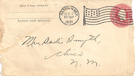 | Machine flag cancellation: "RATON, N.MEX. DEC 17 1921". |