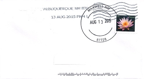 | Hand cancellation: "MAXWELL, NM 87728 AUG 13 2015". |