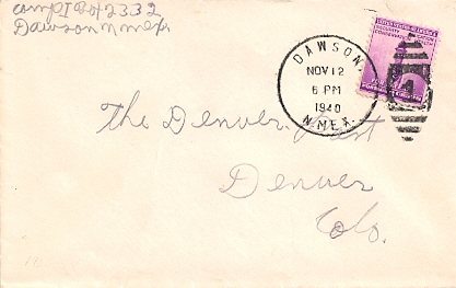 | Hand cancellation: "DAWSON, N.MEX. NOV 12 1940 ( 1 )". |