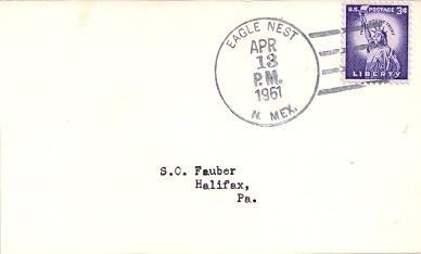 | Hand cancellation: "EAGLE NEST, N. MEX. APR 13 1961". |
