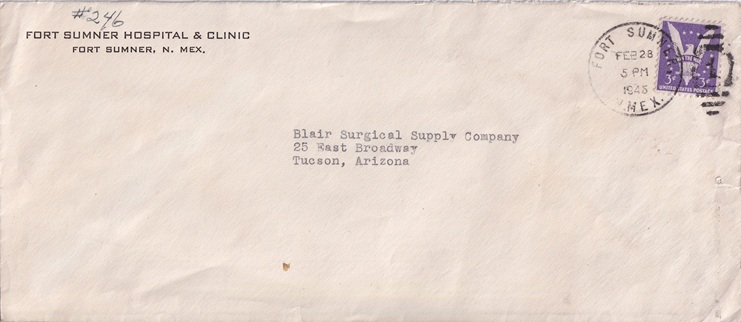 | Machine cancellation: "FORT SUMNER, N.MEX. FEB 5 1946". |