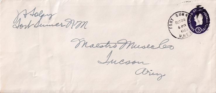 | Machine cancellation: "FORT SUMNER, N.MEX. OCT 1 1943". |