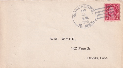 | Hand cancellation: "GUADALUPE, N. MEX. JAN 25 1926". |