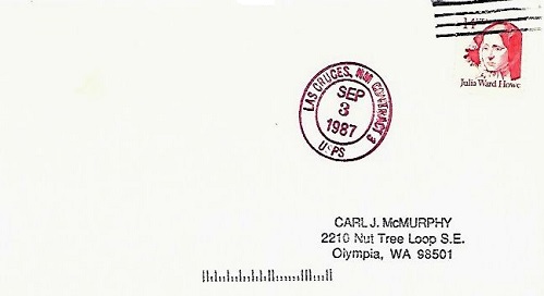 | Hand cancellation: "UNIV. PK. BR., LAS CRUCES, NM 88003-9998 USPS MAY 10 1988". |