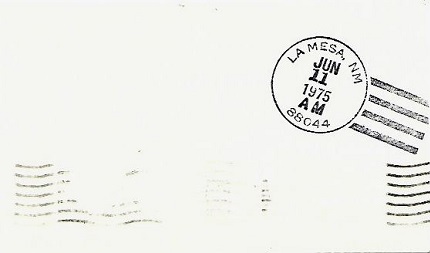 | Two different hand cancellations on insert: "VADO, NM 88072 FEB 20 1975" and "VADO RUR. BR., LA MESA, NM USPO FEB 20 1975". |