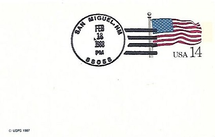 | Hand cancellation: "WHITE SANDS MISSILE RANGE, NM 88002 JAN 18 1987". |