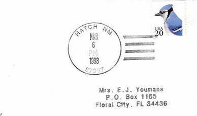 | Hand cancellation: "CHAMBERINO, NM 88027 FEB 25 1998". |